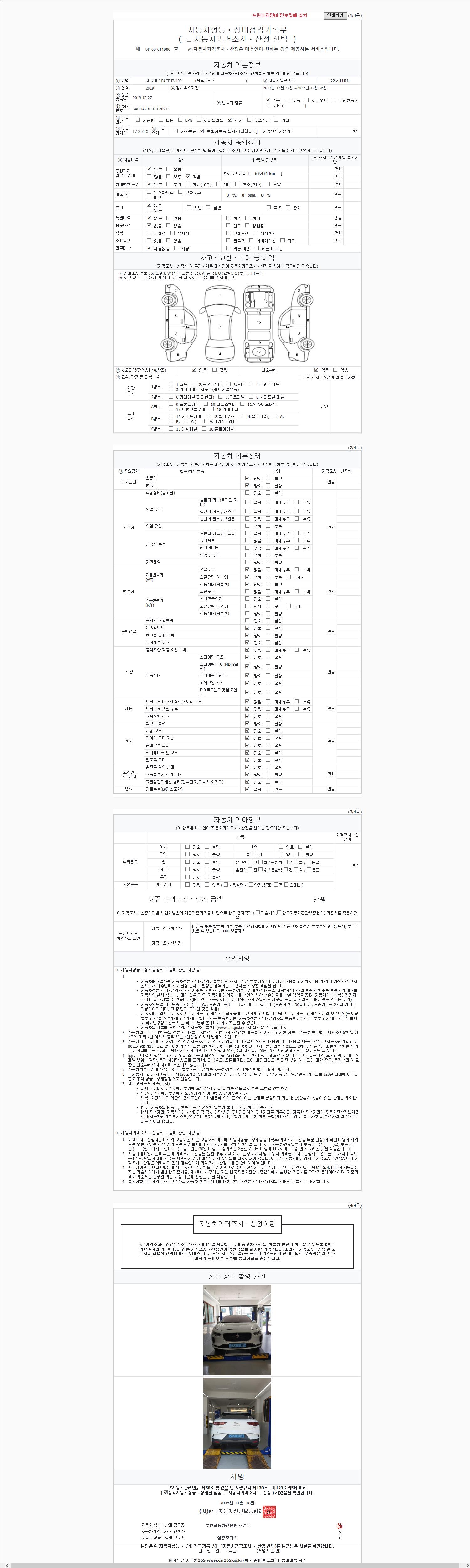 - 사고유무 : 성능기록부 참조
