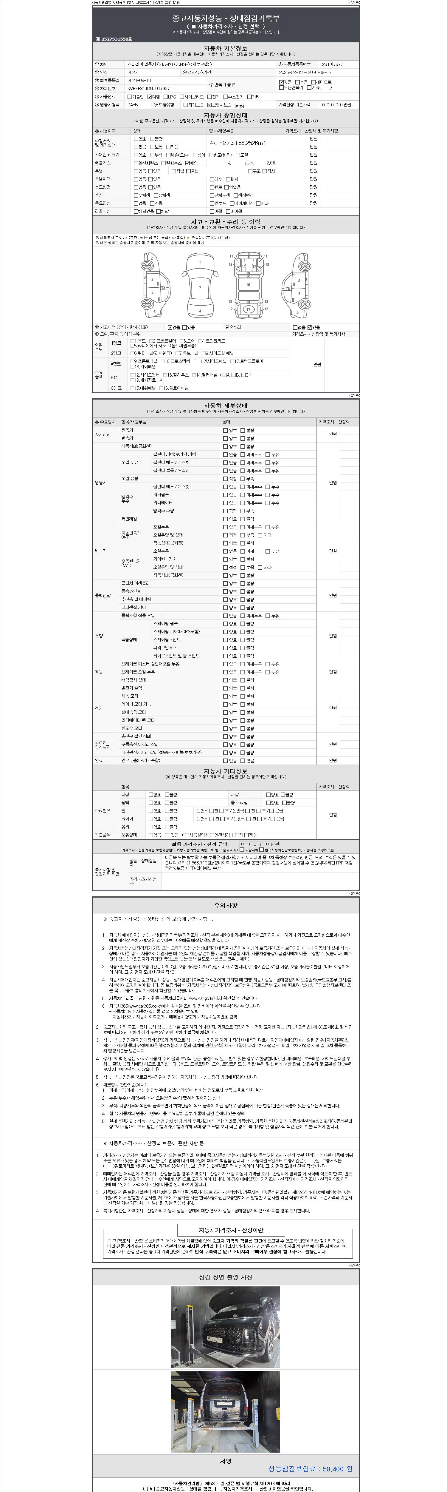- 2. 차량 등록증이나 성능점검지 등을 상담자에게 요청및 확인하시고 사전에 미리 점검 하시기를 권유드립니다.