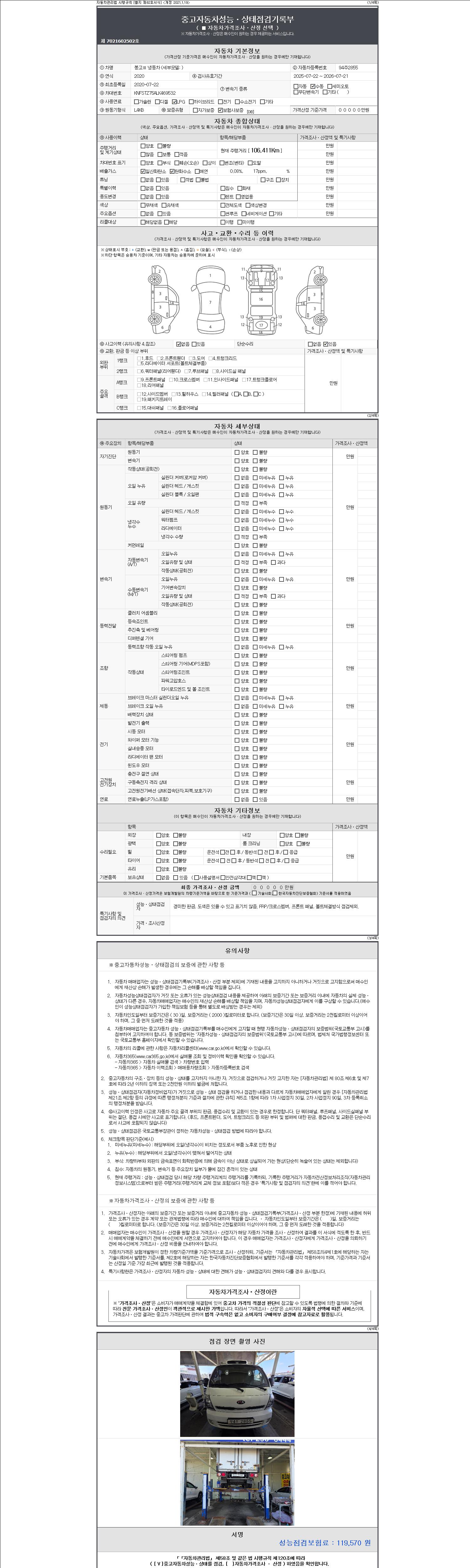 | 주행거리 | 106,411 km | 차량번호 | 94주2855 | 사고유무 | 성능기록부 참조 | 제시번호 | 제 2147483647 호 |