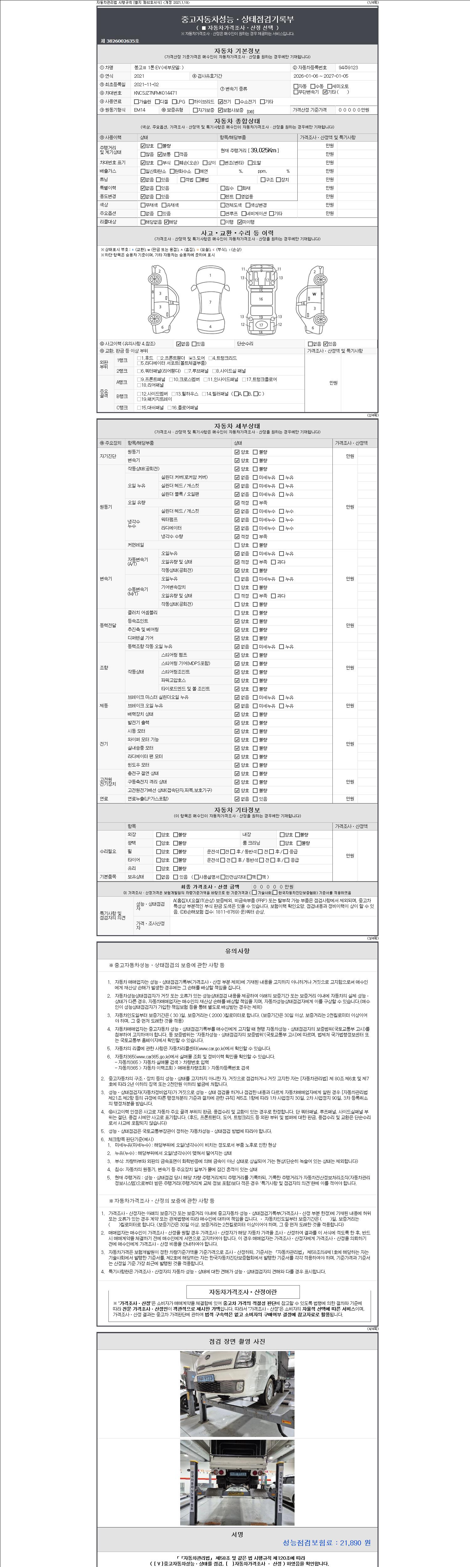 | 주행거리 | 39,025 km | 차량번호 | 94주9123 | 사고유무 | 성능기록부 참조 | 제시번호 | 제 2147483647 호 |