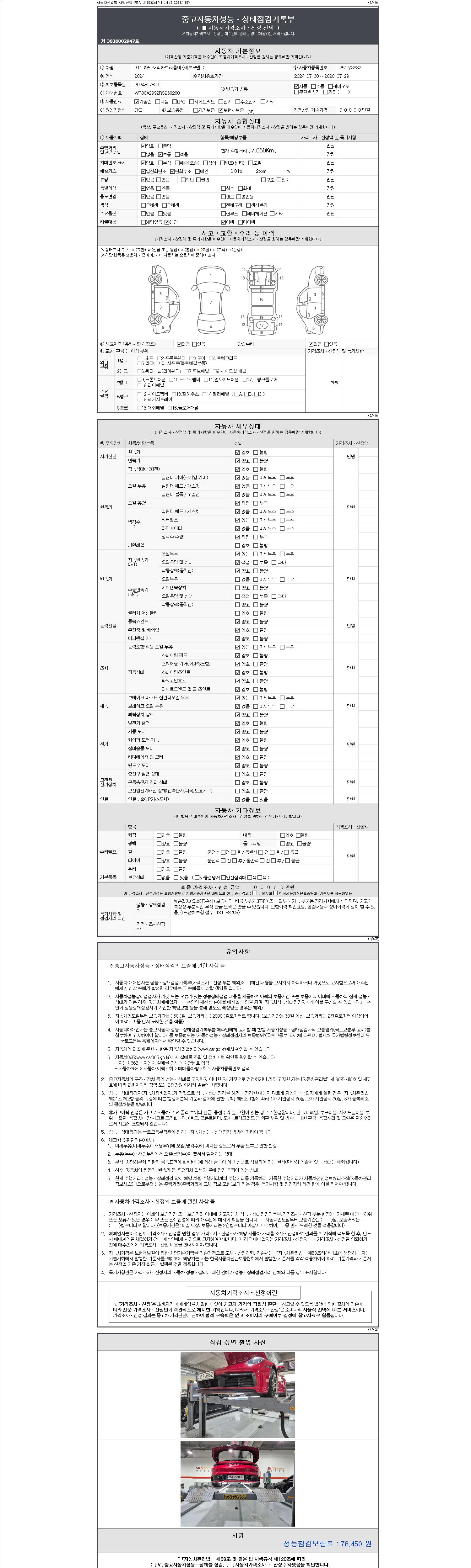 | 주행거리 | 7,060 km | 차량번호 | 251우3882 | 사고유무 | 성능기록부 참조 | 제시번호 | 제 2147483647 호 |