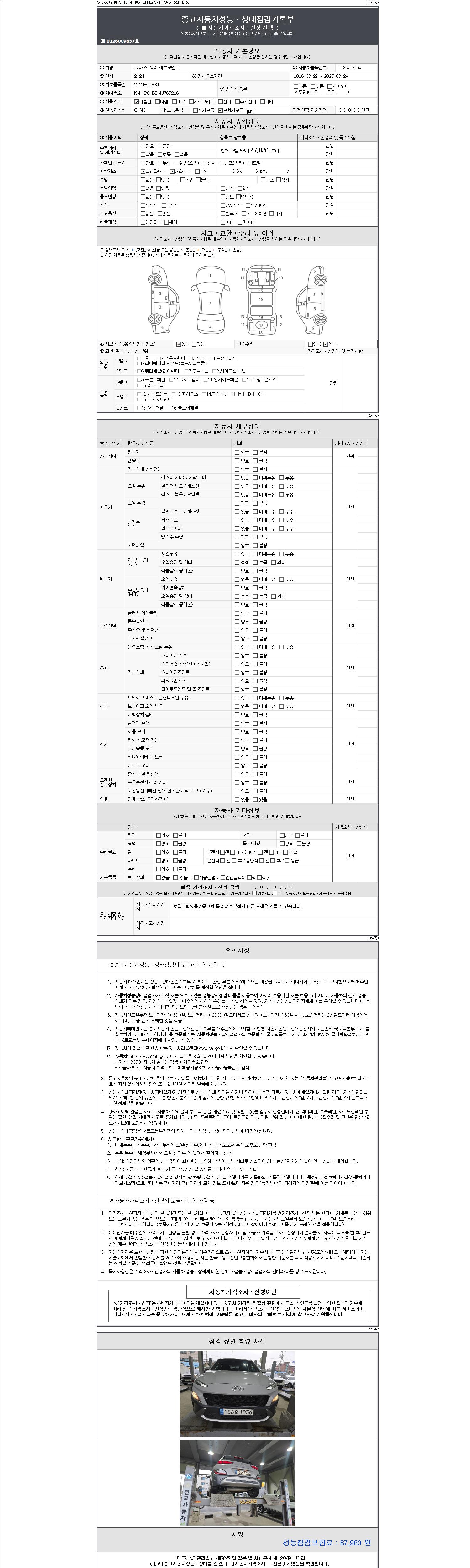 | 주행거리 | 47,920 km | 차량번호 | 365더7904 | 사고유무 | 성능기록부 참조 | 제시번호 | 제 2147483647 호 |