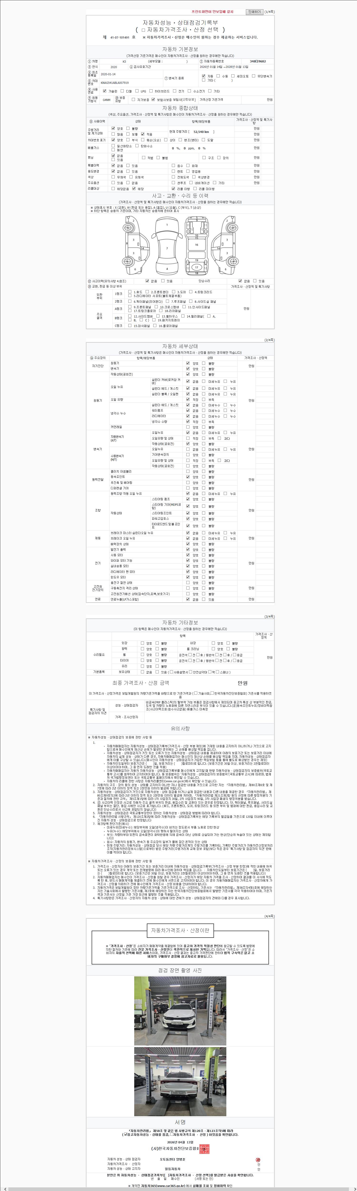 - 사고유무 : 성능기록부 참조
