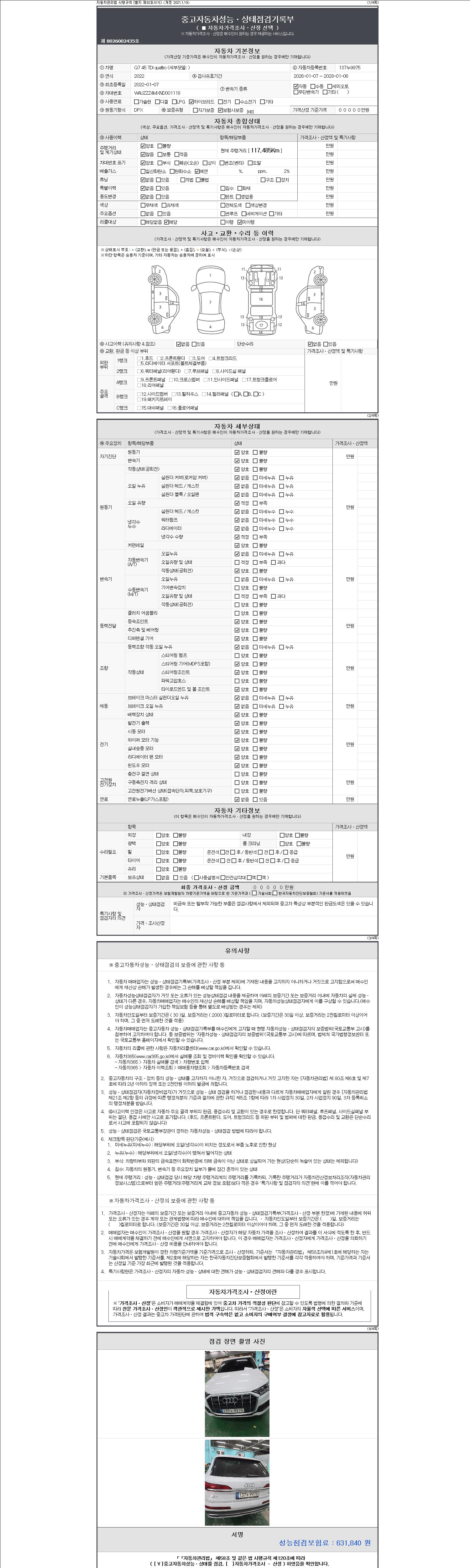 - 2. 차량 등록증이나 성능점검지 등을 상담자에게 요청및 확인하시고 사전에 미리 점검 하시기를 권유드립니다.