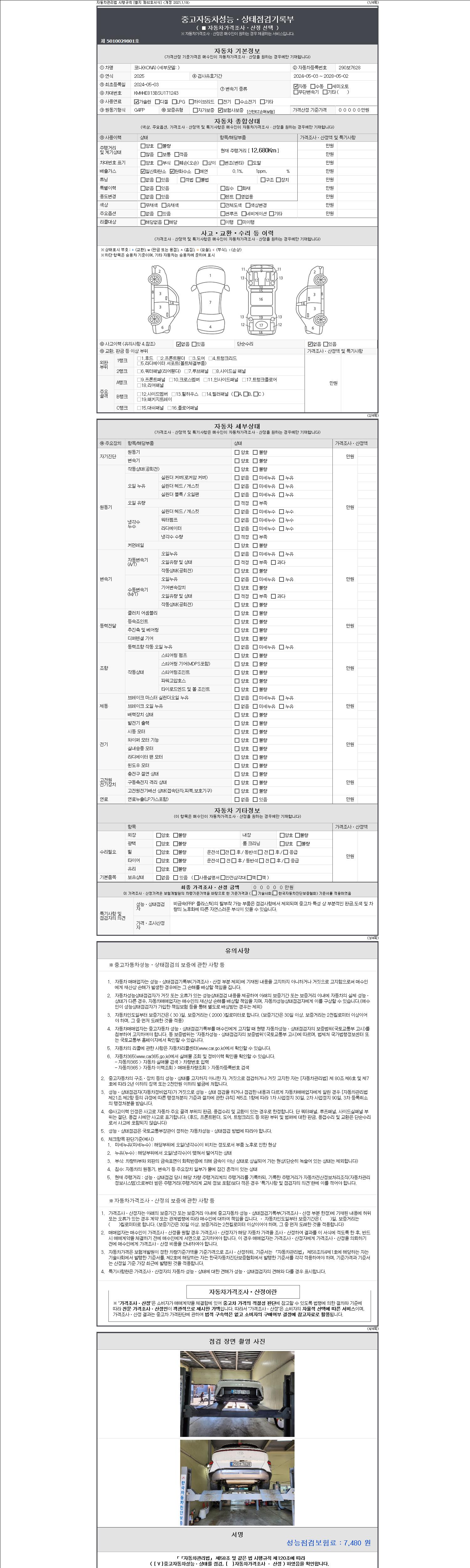| 주행거리 | 12,680 km | 차량번호 | 290보7628 | 사고유무 | 성능기록부 참조 | 제시번호 | 제 2147483647 호 |