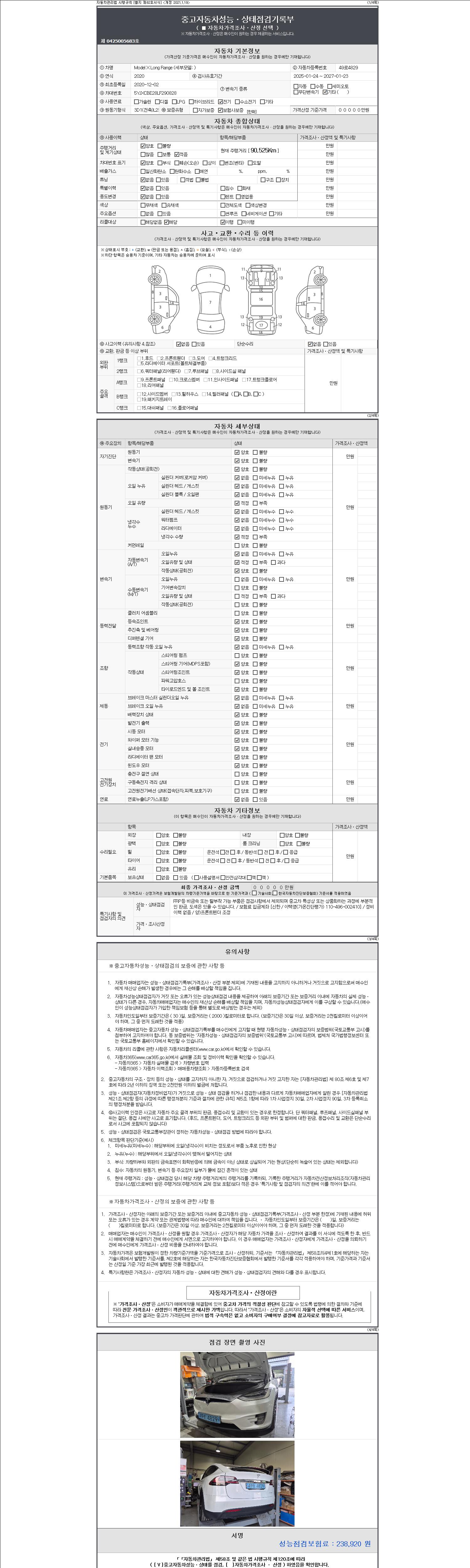 - 사고유무 : 성능기록부 참조