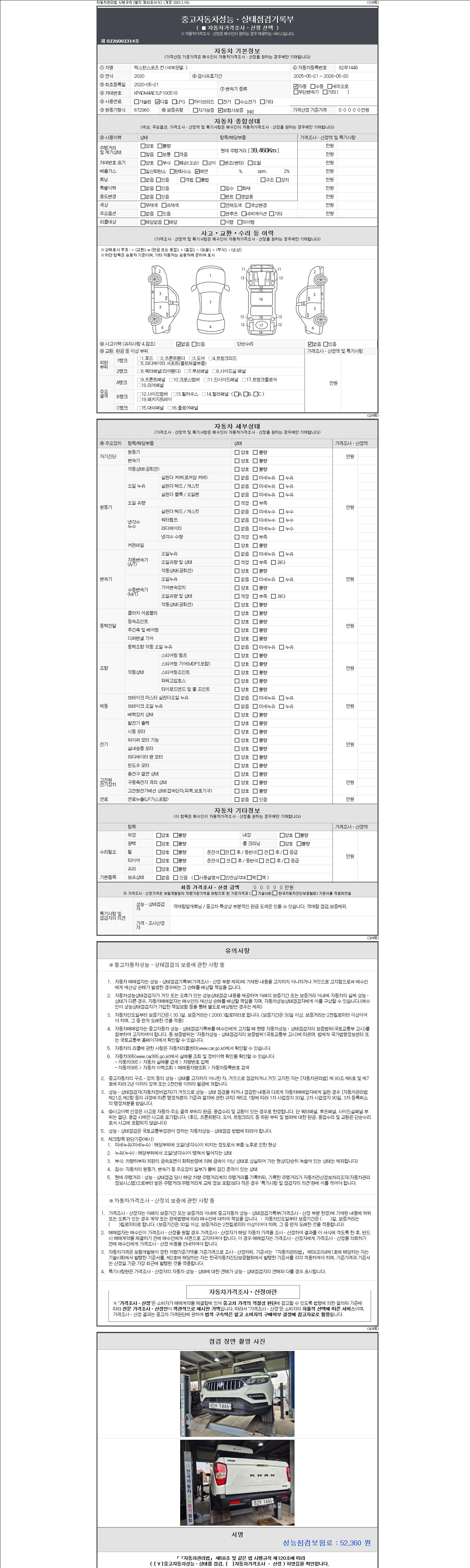 | 주행거리 | 39,460 km | 차량번호 | 82무1446 | 사고유무 | 성능기록부 참조 | 제시번호 | 제 2147483647 호 |