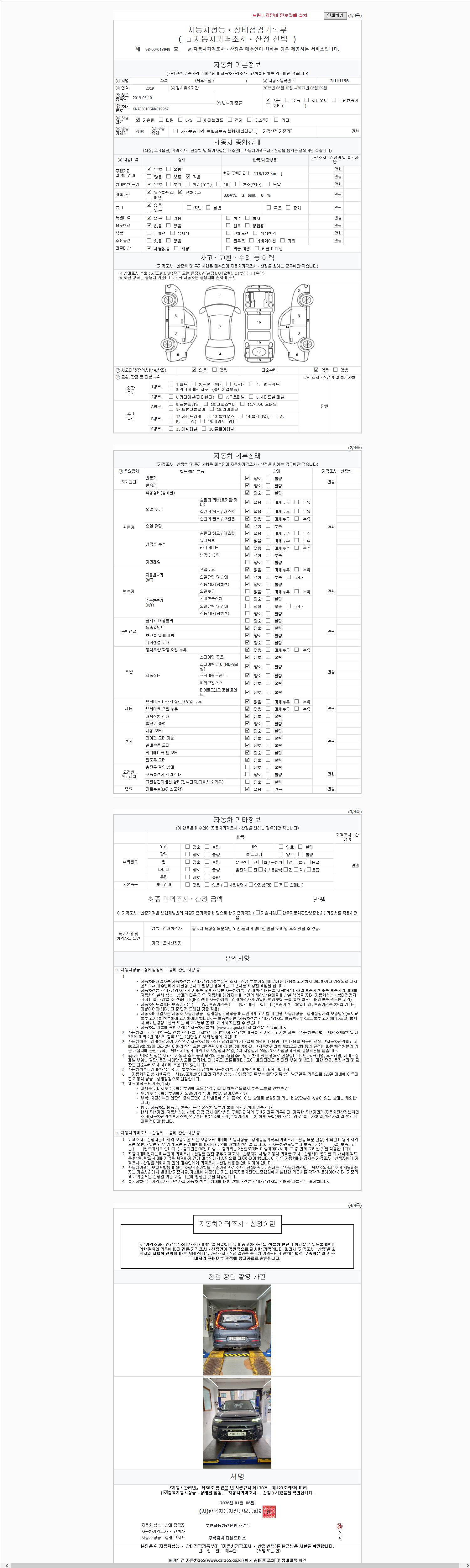 | 주행거리 | 110,000 km | 차량번호 | 31마1196 | 사고유무 | 성능기록부 참조 | 제시번호 | 제 2026006622 호 |