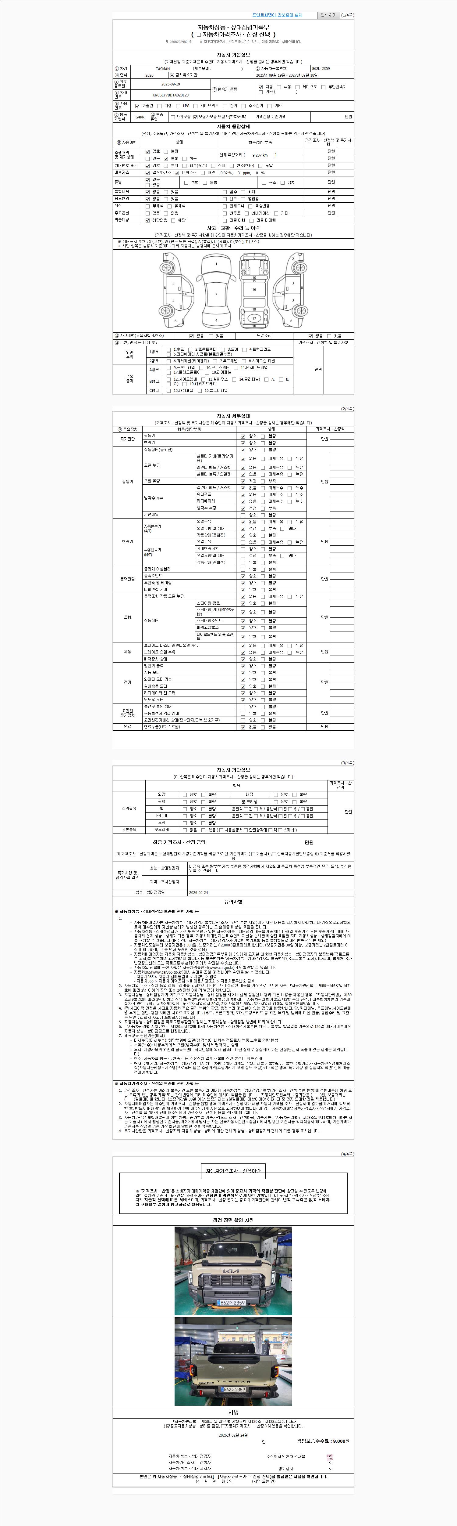 | 주행거리 | 9,300 km | 차량번호 | 862머2359 | 사고유무 | 성능기록부 참조 | 제시번호 | 제 2026009321 호 |