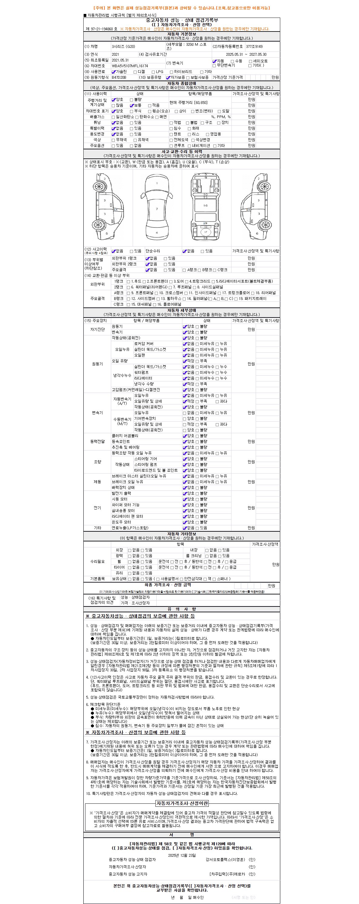 -중고자동차 매매업자를 통해 차량을 구입하실 경우 반드시 "중고자동차 성능, 상태점검 기록부"를 교뷰 받으셔야 하며, 매매업자는 반드시 의무 교부 하여야 압니다.